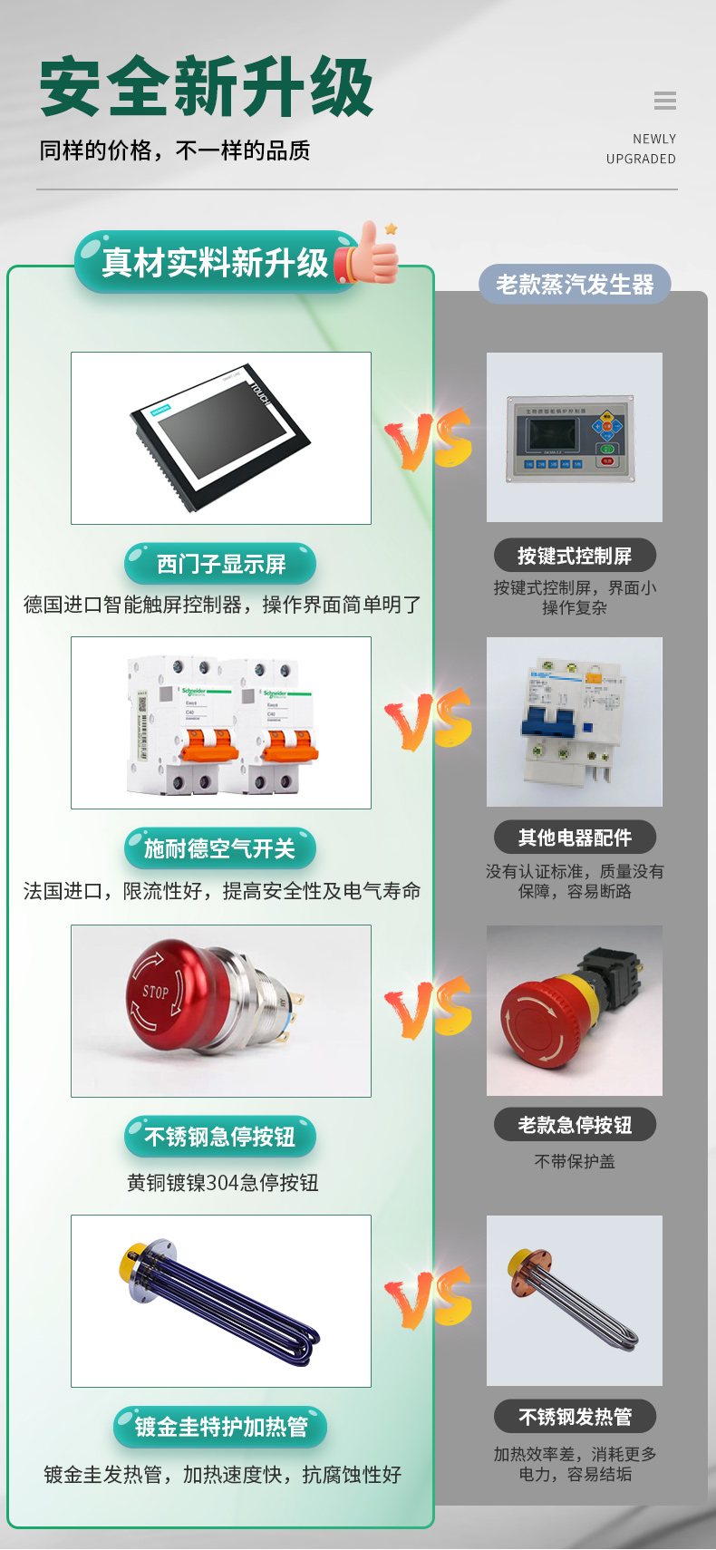 特 色:西門子顯示屏、施耐德空氣開關、產汽快、免報檢,符合環保要求